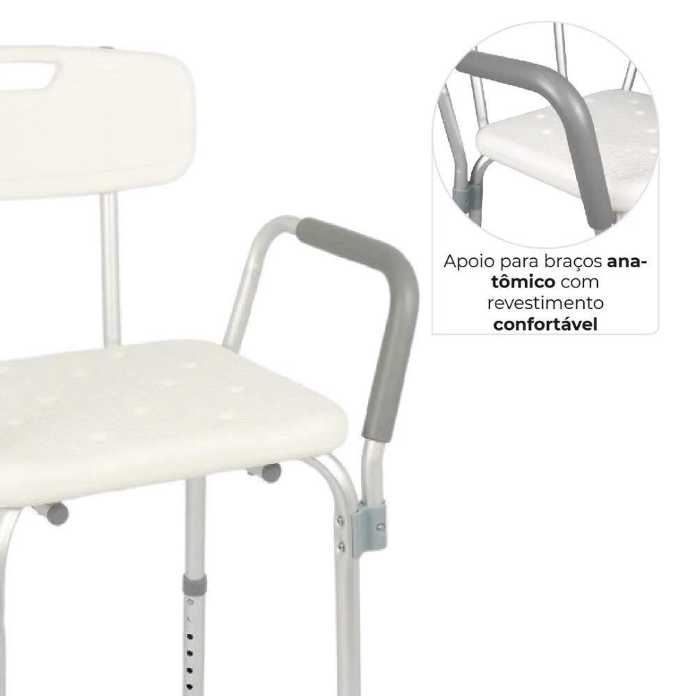 Com encosto, apoio para os braços e assento curvo antiderrapante, ela proporciona suporte completo para entrar, permanecer e sair do banho com mais tranquilidade. Suas ponteiras com ventosa evitam deslizamentos, dando mais confiança tanto ao usuário quanto ao cuidador.